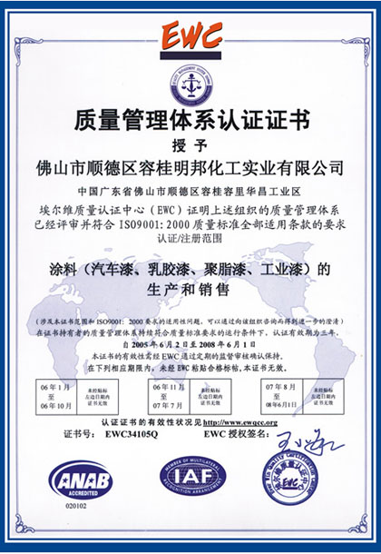 Elvey Centro de Certificación de Calidad para certificar que el sistema de gestión de calidad de la organización ha sido revisada y de acuerdo con ISO9001: requisitos de la norma de calidad de todas las disposiciones aplicables 2000