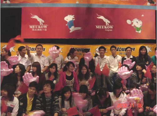 由明邦公司邦派漆赞助的广东卫视 “非常亚运会” 于11月18日22:50现场直播,该栏目是广东卫视与亚运赛程同步的一档万众期待的大型综艺娱乐游戏节目。此次活动邀请了亚运跆拳道冠军吴静钰、举重冠军陆永、游泳冠军曾启亮三位亚运明星全程参与,三位明星蜕去亚运冠军光环,节目中活泼有趣,平易近人,主动与观众合影留念,明邦公司20名员工及多名客户代表与明星现场互动,现场气氛热烈。