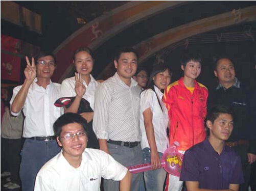 明邦员工和亚运冠军吴静钰合影